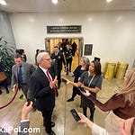 SCENE: Ask a Pol’s Matt Laslo greets Sen. Ted Cruz as the senator and his aides are making their way up a basement escalator to a bank of elevators beneath the US Senate floor.